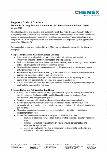 Chemex expects its suppliers and service providers to share our basic principles.